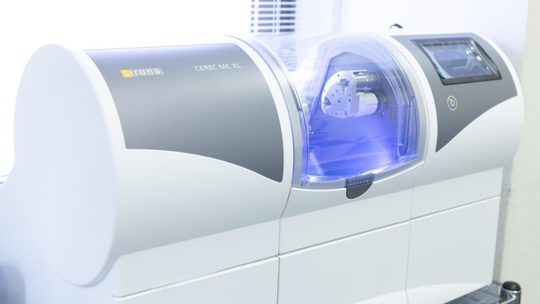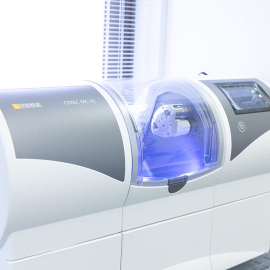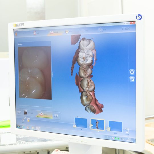白い詰め物や被せ物を製作するには、通常いくばくかの期間を必要とします。当院の場合は、自動的にセラミックを削り出して詰め物・被せ物を作ることができる「セレックシステム」という最新システムを導入しておりますので、最短1日でお作りすることが可能です。
